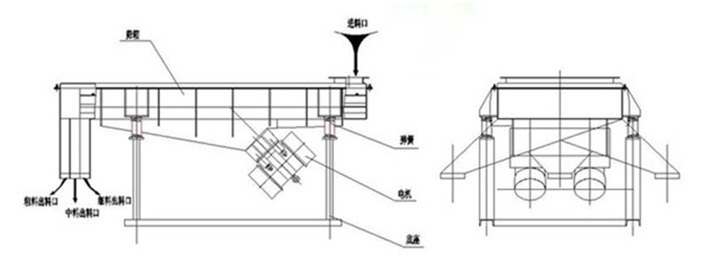 直線振動篩由雙振動電機驅動。當兩臺振動電機同步、反向旋轉時,偏心塊產生的激振力在平行于電機軸線的方向上相互抵消,并沿垂直于電機軸線的方向疊加。因此,篩機的軌跡是一條直線。兩個電機軸相對于篩面具有傾角。在激振力和物料自重的共同作用下,物料在篩面上被拋起向前跳躍作直線運動,從而達到對物料進行篩分分級的目的。可用于實現流水線中的自動化作業。具有能耗低、效率高、結構簡單、維修方便、全封閉結構、無粉塵外溢等特點。篩目數為0-120目,可篩出7種不同粒度的物料。