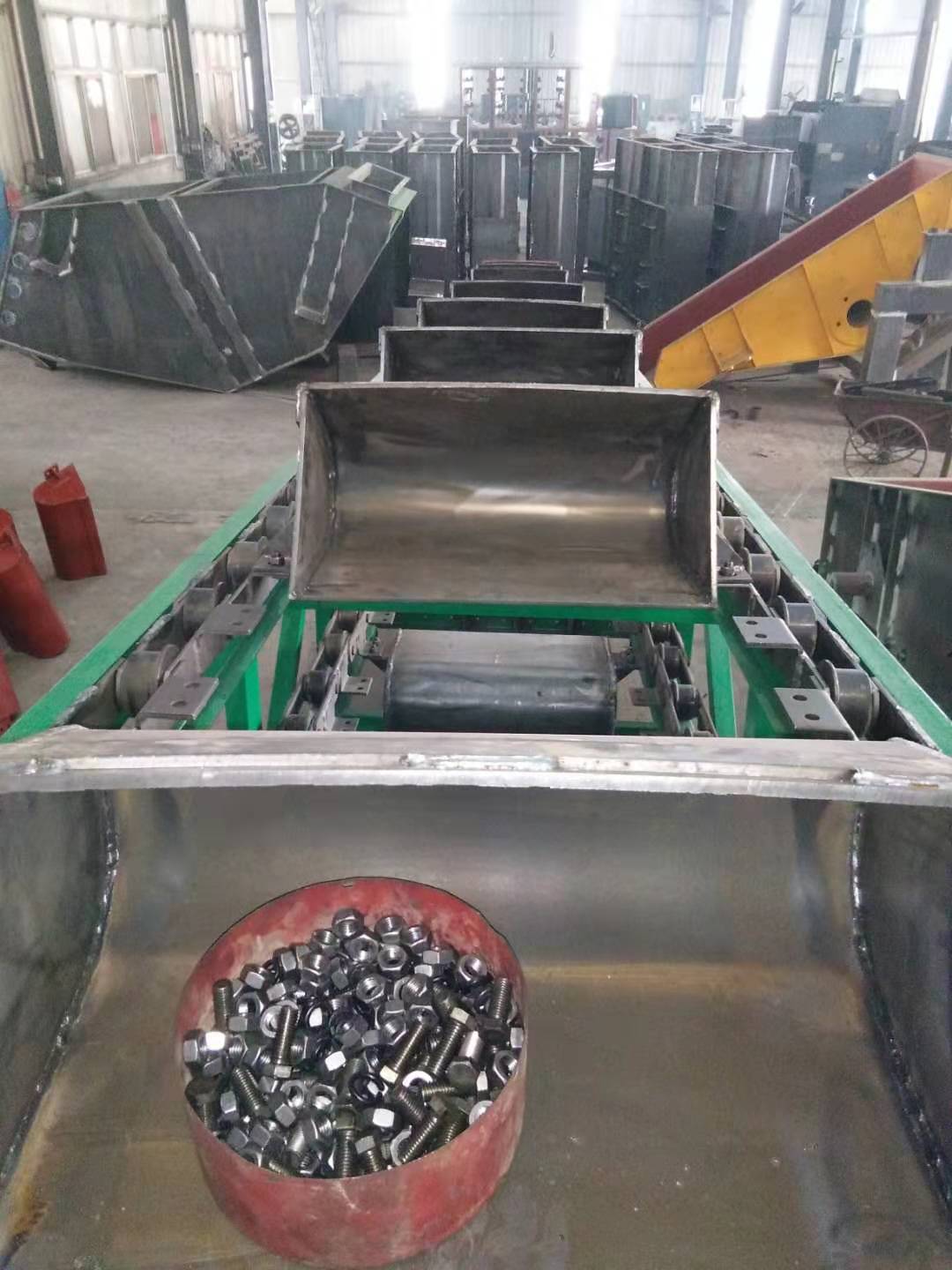 鏈斗輸送機(jī)的料斗寬度分別有350mm、450mm、630mm、800mm、 1000mm五個(gè)規(guī)格,根據(jù)不同的運(yùn)行場合及環(huán)境要求,鏈斗輸送機(jī)分敞開型、半封閉型和全封閉型三種形式。用戶可根據(jù)附表中的參數(shù)選擇機(jī)型,并提出具體的布置形式及尺寸、輸送產(chǎn)量、物料參數(shù)和其他要求。該機(jī)適用于各種粉狀、塊狀散裝物料的水平或傾角≤60°的輸送,特別適宜一些溫度高、容量大、塊頭大、具有鋒利棱角和磨琢性強(qiáng)的固體物料的輸送。鏈斗式輸送機(jī)(鏈斗輸送機(jī))產(chǎn)品廣泛應(yīng)用于電站、礦山、煤炭等行業(yè)的,進(jìn)行各種松散物料的輸送;如:鍋爐灰渣、水泥熟料、礦渣、焦炭、碎石等,特別是一些溫度高、容重大、塊度大、具有鋒利銳角和磨琢性強(qiáng)的物料。