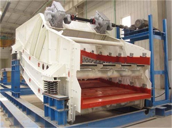 重型振動篩的基本工作原理為篩機起動后,呈對稱布置的兩臺相同型號和規格的振動電機或激振器作同步反向運轉,其產生的激振力通過傳振體;電機或激振器底座傳遞到整個振動體;篩箱上使篩箱帶動篩面作周期性振動從而使篩面上的物料隨篩箱一同作定向跳躍式運動,其間小于篩面孔徑的物料通過篩孔落到下層成為篩下物,大于篩面孔徑的物料經連續跳躍運動后從排料口排出完成篩分作業。